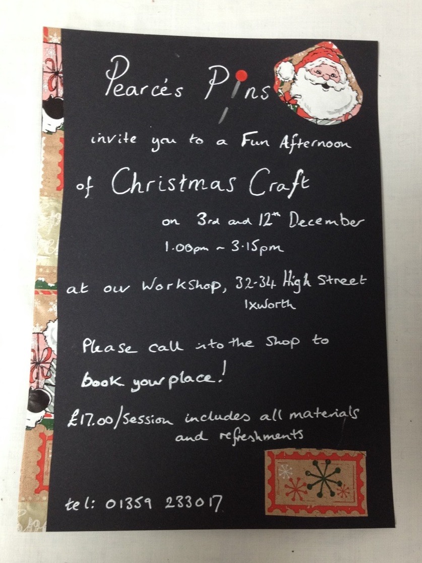 I am delighted to be running two Christmas Craft afternoons of festive fun in December.