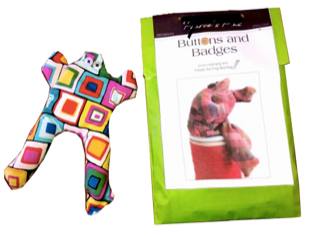 Contents: thread&needle, buttons, pins, lentils, 2 pieces of material (already cut into frog shape).