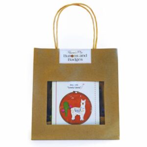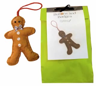 Contents: buttons & bow, needle & thread, 2 pieces of felt (cut into gingerbread man shape), pins, stuffing, red twine